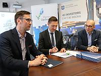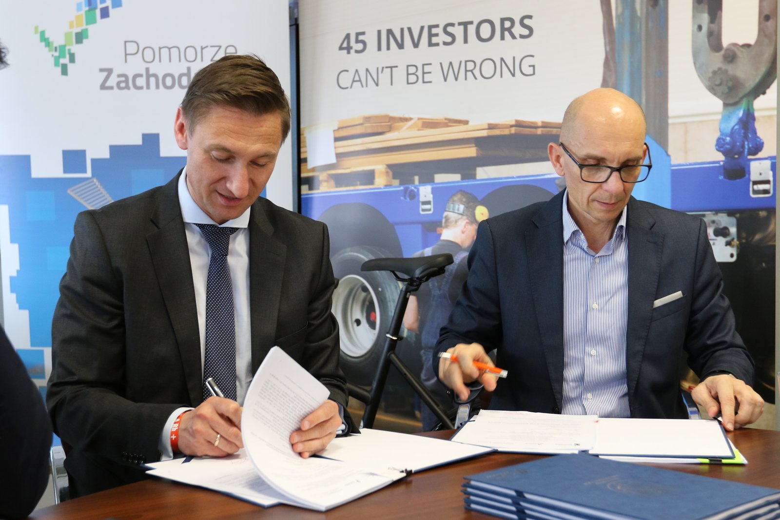 Umowy podpisano w siedzibie spółki Faymonville produkującej naczepy specjalistyczne. Firma znajduje się na terenie Goleniowskiego Parku Przemysłowego w Łozienicy. Obecny na uroczystości prezes Łukasz Żuchowski dodał, że to doskonała wiadomość dla pracowników przedsiębiorstwa, bo dzięki nowej infrastrukturze już niebawem będą mogli bezpiecznie dojechać rowerem do pracy. Na zakończenie piątkowej uroczystości burmistrz Robert Krupowicz wręczył marszałkowi Olgierdowi Geblewiczowi pamiątkową koszulkę rowerową z nadrukiem "Jestem z Goleniowa".